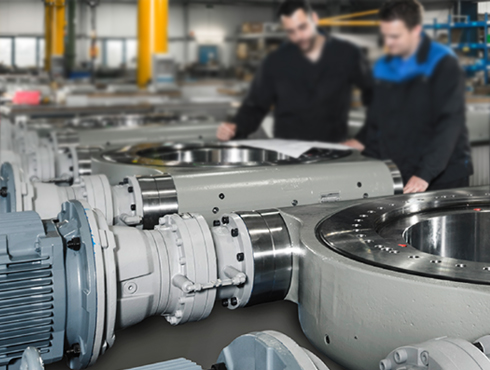在徐州的生產(chǎn)工廠(chǎng),我們生產(chǎn)標(biāo)準(zhǔn)型號(hào)的滾珠回轉(zhuǎn)支承,滾子回轉(zhuǎn)支承和滾珠滾子組合回轉(zhuǎn)支承,尺寸從100到6,000 mm。關(guān)于產(chǎn)品我們具有多項(xiàng)技術(shù)和設(shè)計(jì)專(zhuān)利。如今,我們的帶直齒輪減速機(jī)或蝸桿驅(qū)動(dòng)器的即裝型設(shè)備可提供多種標(biāo)準(zhǔn)系列。
